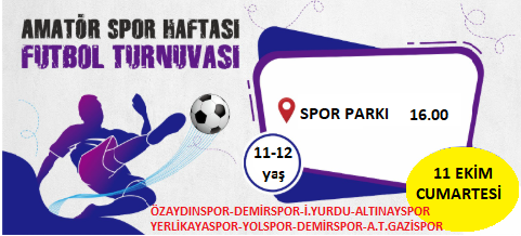 Amatör Spor Haftası kapsamında yapılacak olan futbol turnuvasına tüm Sivas halkı davetlidir.Turnuvaya Özaydınspor,Demirspor,Yerlikayaspor,A.Turan Gazispor, Altınayspor,Yolspor,İ.Yurduspor ve Belediyespor katılacaklardır.![]() |