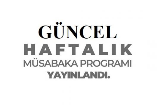 Erteleme haftası ve yeni haftalık müsabaka programı yayınlanmıştır.Kulüplerimizin müsabakalarını HAFTALIK PROGRAM sayfasından takip etmeleri gerekmektedir.