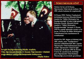 İlk defa 1981 yılında kutlanmıştı. Cumhuriyet Dönemi’nde yeni Türk harflerini öğrenmek amacıyla düzenlenen okuma yazma kurslarına “Millet Mektepleri” adı verilmiştir. İlk Millet Mektebi,11 Ağustos 1928’de Dolmabahçe Sarayı’nda açıldı. Bunu, İstanbul’da başka okullarının açılışı izledi. Bu arada, İstanbul Radyosu’nda da dersler verilmeye başlandı. Benzeri kurslar, büyük kentlerde, devlet dairelerinde açıldı. Millet Mekteplerinin ve harp inkılabının simgesi durumuna gelen ,O hepimizin bildiği fotoğraf, Mustafa Kemal’in 1928 yılında Sivas’ta halka yeni harfleri tanıtırken çekilen fotoğrafıdır. 3 Kasım 1928’de yayınlanan “Türk Harfleri Hakkında Kanun”la, en geç altı ay içinde, yeni alfabenin öğrenilmesi zorunluluğu getirilmişti.24 Kasım 1928’de yayımlanan Millet Mektepleri Teşkilatı Talimatnamesi’nde de Cumhurbaşkanının, bu okulların başöğretmeni olduğu; altı ay içinde,16-45 yaş arasındaki, eski yazıyı bilen bilmeyen herkese yeni yazının öğretilmesi hükmü yer alıyordu. İstanbul’da kurslara kayıtlar,23 Aralık 1928’de başladı. Bu kurslara haftada dört gece erkekler, iki gece de kadınlar katılıyordu. Kurslar, A ve B dershanelerine ayrılmıştı. Okuma yazma bilmeyenler, A dershanesinde okuma yazma öğrendikten sonra B dershanesine geçiyor ve orada okuma, kompozisyon, aritmetik, sağlık bilgisi, yurt bilgisi derslerini alıyordu. Millet Mektepleri, 1923’de başlatılan dilde yenileşme atılımına da önemli katkılarda bulundu. Harf inkılâbından önce yüzde on dolayında olan okuryazar oranı,1936’da yüzde yirmi beşe ulaştı. Millet Mekteplerinin işlevi 1936’dan sonra halk evleri ve halk adaları üstlendi. 1928 yılında Atatürk’ün Millet Mektepleri Başöğretmeni olduğu 24 Kasım,1981 yılında “öğretmenler Günü” olarak kabul edildi. Öğretmenlerimizin gününü kutluyor; bu günlerin sağlıklı, mutlu ve başarılı olmalarını sağlayıcı adımların atılmasını “vesile” oluşturmasını diliyoruz. |